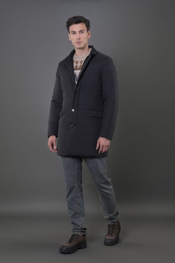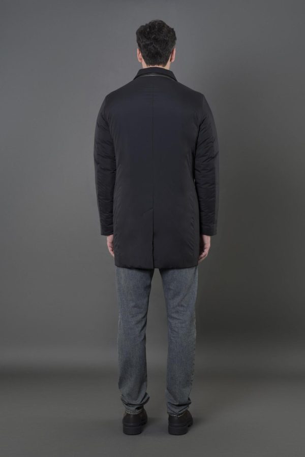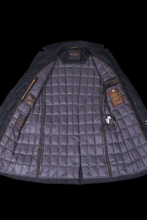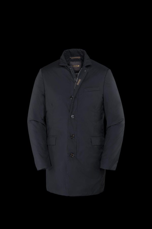 Smooth coat belonging to the Acqua line (1 umbrella). Made of super lightweight matte technical fabric, 20 denier hydro-repellent resin-coated and down proof. Padded with goose down and internally quilted in squares.