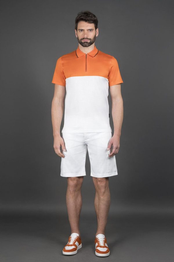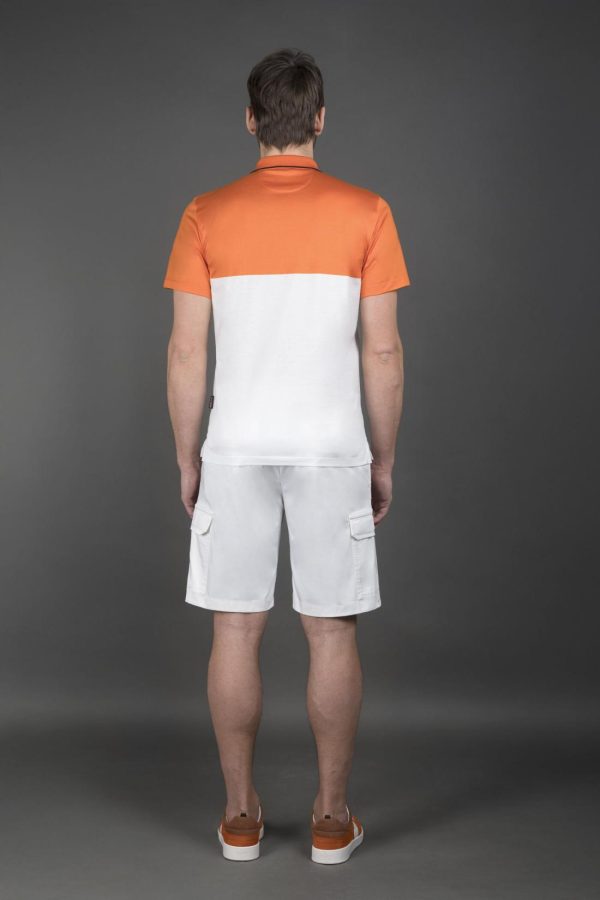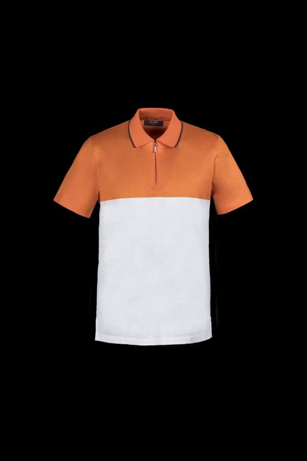 Polo shirt featuring a “color-block” design, from the MooRER Golf Collection.