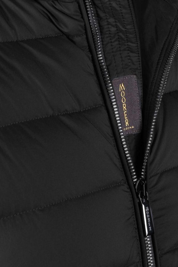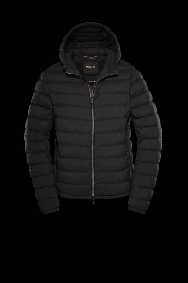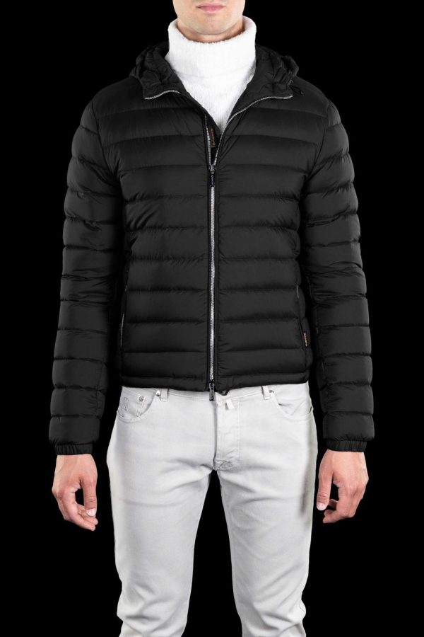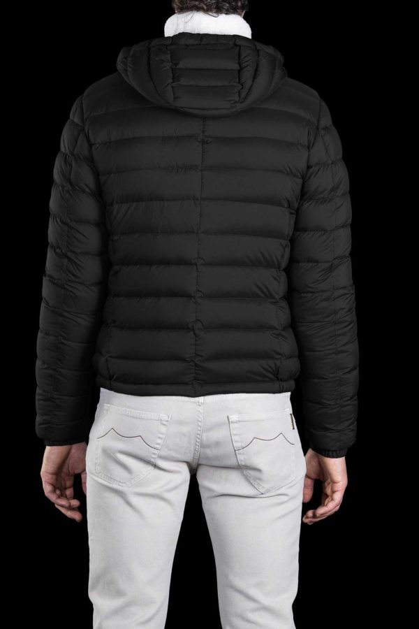 Mid-season blouson belonging to the Acqua line (1 umbrella). Padded with goose down, quilted in boudin style and made of very lightweight down-proof matte fabric, resembling silk fabrics with imperceptible wrinkles on the surface that give the garment its uniqueness.