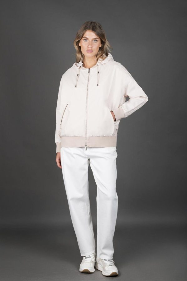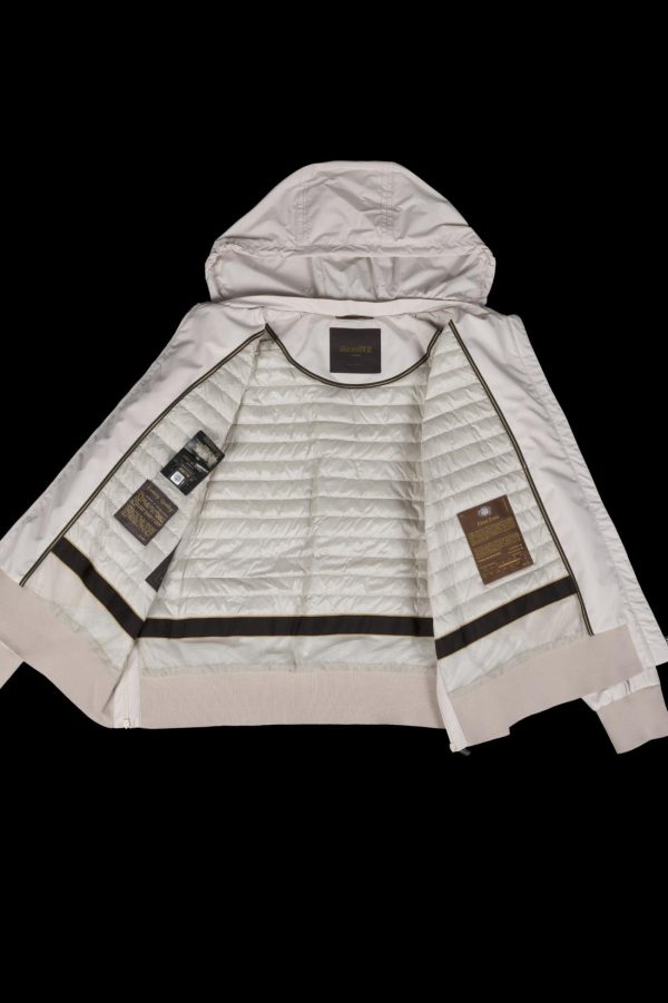 Smooth jacket from the Aqua Line (2 umbrellas). Lightly padded with goose down and made of technical fabric with waterproof membrane.