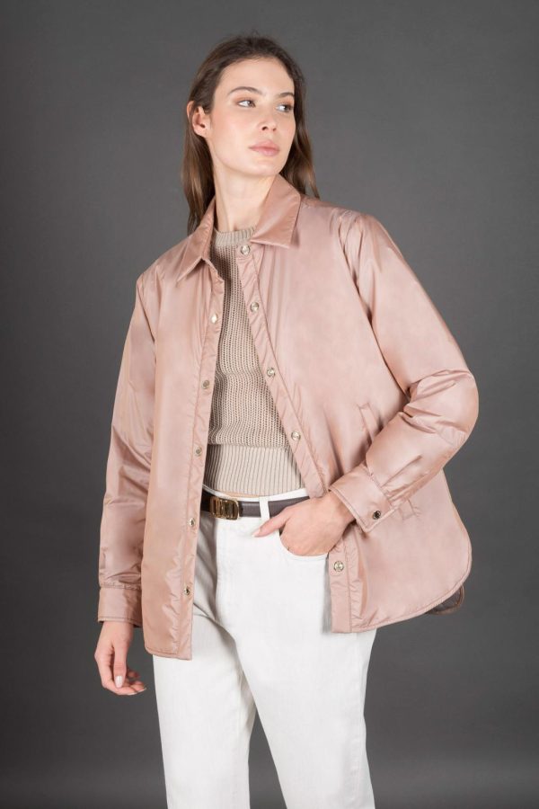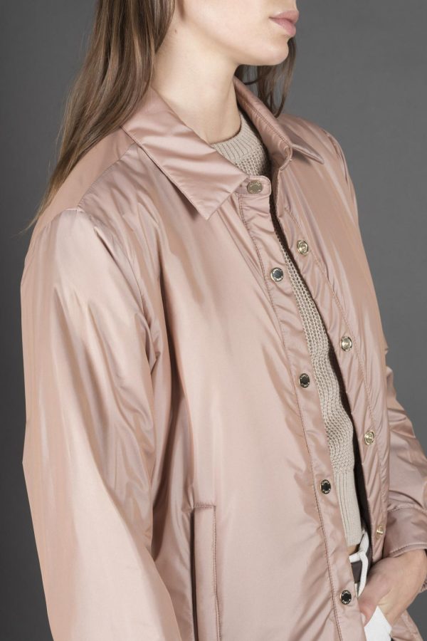 Lightly padded with soft quilted padding on the inside. Made from technical taffeta fabric with a chambray effect for a refined casual style and a shimmering, iridescent finish. The special 50% polyester composition enhances color brightness, while the finish makes it lightweight and flexible.