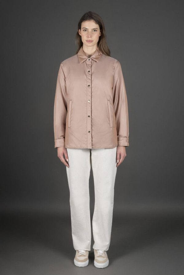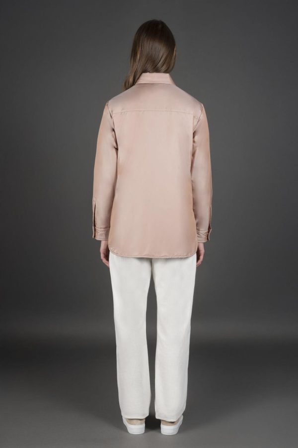 Shirt-jacket with a minimalist yet refined design, featuring a front shorter than the back.