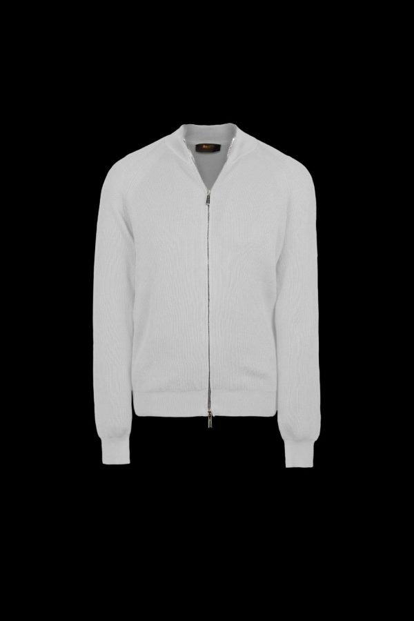 Full zip cardigan in English rib, made of “Superpiuma” cotton, exclusively cultivated in a small area in the Nile Delta. This cotton with long fibers is what the Egyptians called “white gold” due to its extraordinary silkiness, wrinkle resistance, breathability, and purity.